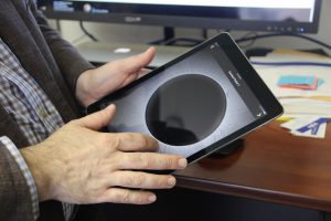 The Eclipse Soundscapes’ app features an interactive “rumble map,” which uses a smartphone’s touch screen and vibrational feedback to demonstrate the physical qualities of an eclipse. The rumble map displays photos of the eclipse at various stages. When users touch the image, the app reads the greyscale value of a pixel underneath their finger, and vibrates the phone with a strength relative to the brightness of the section. As users move their fingers around the Sun, their smartphone will vibrate more. As they move their fingers into the dark spaces blocked by the Moon, the vibration will diminish and disappear.